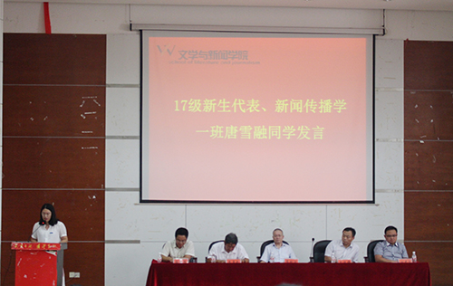 接下来,由2017级新生代表、新闻传播学1班唐雪融同学发言。首先,唐雪融同学表达了作为新生来到湘大的喜悦之情,诉说了自己对湘大以及A片直播网