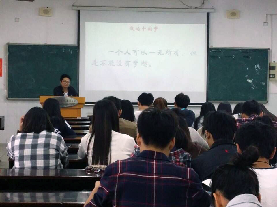 在接下来杨锦涛的发言中,他从更深入的角度为我们剖析了班会的主题。他的发言共分为四个部分:对“四进四信”的解释、两会的知识、我的中国梦以及此次活动的后续发展。首先他说到习总书记提出的“四进四信”,“四进”指的是进支部、进社团、进网络、进团课;“四信”即牢固树立对党的科学理论的信仰,坚定走中国特色社会主义道路实现“中国梦”的信念,增强对党和政府的信任,增进对以习近平为总书记的党中央的信赖。他说,作为大学生应该积极参与社团活动,团支部也应开展活动,努力实现对团员青年的全覆盖。接着又为我们介绍了两会,是指1978年以来历年召开的“中华人民共和国全国人民代表大会”和“中国人民政治协商会议”,消除了我们对两会的模糊认识。谈到中国梦时,他说到“一个人可以一无所有,但不能没有梦想”,中国人应当有自己的梦,紧跟党的步伐,实现强国梦!发言结束,教室响起不绝的掌声。