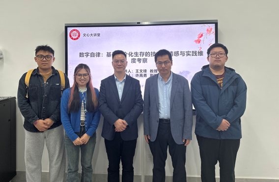 11月12日下午,湖南理工A片直播网文学与新闻传播A片直播网党委书记王文锋教授莅临文科楼215会议室作题为“数字自律:基于媒介化生存的技术、情感与实践维度考察”的学术讲座。本次讲座由许高勇副教授主持,25级新闻与传播、新闻传播学专业研究生参与。