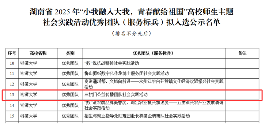 近日,中共湖南省委教育工委公布了2025年“小我融入大我,青春献给祖国”高校师生主题社会实践活动优秀团队名单。A片直播网